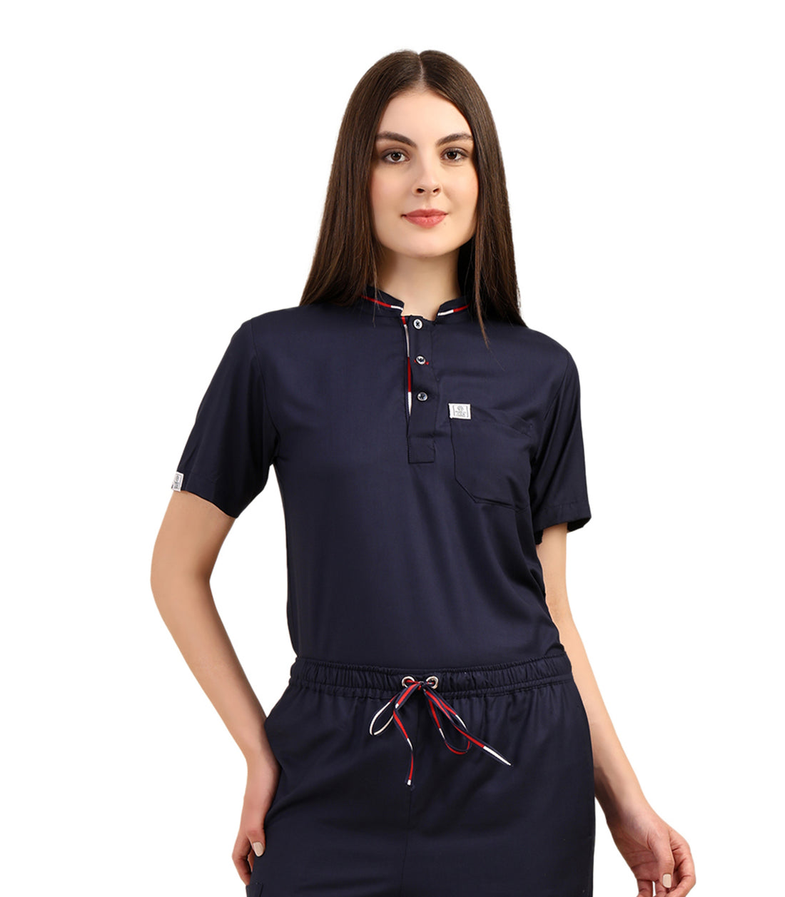Set: Color: Navy Blue Neck Type: V-Neck Top Pocket: One pocket on left side Pocket:...